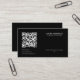 Eine Personalisierte QR-Code-Business-Karte mit modernem Design in Schwarz. Passen Sie diese Visitenkarte mit Ihrem eigenen QR-Code, Firmenlogo (Größe und Anpassung im Bearbeitungsbereich), Namen und Tagline/Text an.