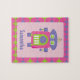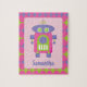 Personalisierter Retro-Rosa, Lila und grüner Robot Puzzle