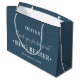 Personalisierte RING BEARER Geschenktasche mit mittelblauer und eisblauer Farbpalette. Die Namensvorlage ist für Sie bereit, den Namen des Trauzeugen sowie die Namen der Braut & Bräutigam und das Hochzeitstag hinzuzufügen. Die Dankesworte lautet "Danke, dass Sie unser Ringträger sind" in einer Mischung aus elegantem Drehbuch und starker, mutiger Typografie. Bitte stöbern Sie in unserem Shop nach alternativen Farben und Größen.