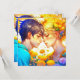Personalisiertes Anime-Mädchen und Junge küssen romantische Valentinstag-Karte.