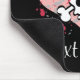Ein goth dennoch girly Herz und personalisiertes rosa Bogenschädel mousepad mit einem grauen und rosa Spritzerhintergrund des Grunge. Personifizieren Sie dieses niedliche Schädel- und KnochenMausunterlage mit Ihrem eigenen Namen, oder was auch immer Sie wollen, um auf ihm zu sagen. Grafik © Chrissy H. Studios, LLC. Alle Rechte vorbehalten.