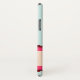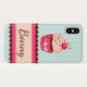 Rufen Sie Fall mit rosa kleinem Kuchen und Kirsche auf tadellosem blauem gestreiftem Hintergrund an.