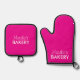 Personalisierter rosa Topfhalter und Backofen mit Ofenhandschuh & Topflappen-Set