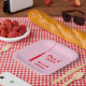 Personalisierter rosa und roter Tassel-Abschluss Pappteller