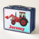 Personalisierter roter Bauernhof-Traktor Metall Brotdose