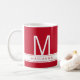 Moderne und minimalistische Tasse in Rot und Weiß mit personalisiertem Namen und Single-Initial-Monogramm ist eine perfekte Möglichkeit, Ihre Tasse zu unterstützen, sich im Büro zu erheben, damit sie nicht mit Ihren Kollegen Kaffeetassen verwechselt wird, oder für den lila Liebhaber, der lila von ihrer Lieblingsfarbe besessen ist!