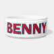 Personalisierte rote mit blauer Umrandung weiße Hintergrund-Namens-Hundeschüssel. Hundeschüssel. Personalisierter Hund. Individuelle Hundeschüssel. Männlicher Hund. Hundeschale.
