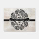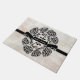 Hier finden Sie eine hübsche Winterferienhauptmatte, die Sie mit Ihrem Familiennamen personalisieren können. Eine Illustration von Kiefernzapfen und Heiligen Ästen umgibt ein schwarzes Band, das einen Namen oder ein Monogramm Ihrer Wahl in der Mitte aufweist. Dieses festliche Design erscheint vor einem neutralen Aquarellhintergrund. Es macht einen künstlerischen ersten Eindruck für jeden Eingang.