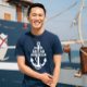 Personalisierter Sailorman Name Navy Anchor Weißer Tri-Blend Shirt