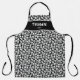 Diese "Skull"-Schürze weist ein weißes Schädelmuster mit einem Namen und einem Titel auf.