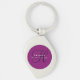 Benutzerdefinierter Schlüsselanhänger mit Ihrem Initial und Namen, mit beliebigem Farbhintergrund, Schriftart oder Schriftart. Wählen Sie einfach die Personalisierung, dann anpassen Option. Entworfen von HAMbyWhiteGlove, erfüllt von Zazzle. Auf einem reißförmigen silbernen Schlüsselanhänger mit Pflaumenhintergrund, schwarzer Initial- und Weißnamenstext dargestellt.