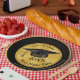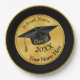Personalisierter Schwarz-und GoldAbschluss-Teller mit 3 Textkasten-Vorlagen für Schulnamen, Abschluss-Jahr und der Name oder der Ihr Text des Absolvent oder löscht ihn. Rufen Sie Designer Linda an, um die Goldhintergrundfarben zu Ihren Schulfarben zu ändern. Sie oder Linda, können die schwarze Kante und kundengerechten die Textfarben zu ALLEN MÖGLICHEN FARBEN ändern.