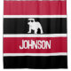 Personalisierte Schwarz-weiße Streifendusche mit rotem Bulldoggen Vorhang dick Streifen, Niedlicher Bulldog mit Sonnenbrille und Dein Name, der mithilfe von Zazzles Designerwerkzeugen personalisiert werden kann.