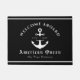Das Nautical "Welcome Abard" Bootsmatte Design besticht durch eine stilvolle marineblau-blaue und weiße Küstenästhetik, die mit einem Bootanker betont wird. Personalisieren Sie es mit dem Namen Ihres Bootes, der Ortschaft, dem Staat und dem festgelegten Datum für eine einzigartige Touch. Diese individuelle Matte ist ein fantastisches Geschenk für Bootsbesitzer, ideal um Gäste an Bord zu empfangen.