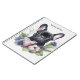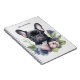 Personalisiertes schwarzes französisches Mops-Hundeheft mit Blumendesign im Aquarellstil. Lila, blaue und rosa Blume und ein bezaubernder Welpe. Ideal für Liebhaber von Haustieren.