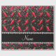 Chili-Paprikaschoten-Geschenkideen. Rotes Chili-Paprikaschotenmuster mit schwarzem Hintergrund des Glitters (NICHT WIRKLICHER GLITTER), mit hübsche schwarze Diamanten (nicht wirkliche Diamanten) mit Herzen und Punkte stripe personalisiertes mit Ihren Namensgeschenken oder Monogrammgeschenke oder Ihre Initialen.