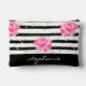 Dieses elegante Accessoire-Beutel besticht durch rosa Aquarellfarben-Blume mit schwarzen Streifen und goldenen Konfetti-Mustern. Fügen Sie Ihren Namen auf der Vorderseite zu personalisieren.