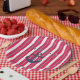 Personalisierter Nautical Lake oder Strand Red White Striping Design von © Cathy Thompson. Ich habe ein Set der Vorlage, damit Sie sich an den Namen Ihres Sees oder Strandes anpassen können. Keine Notwendigkeit, technisch versiert zu sein. Leicht!