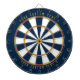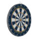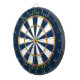 Dartboard mit einem Farbschema aus der Mitte des Jahrhunderts (dunkelblau, rot und Senfgelb) mit personalisiertem Text auf der Oberseite und unten auf dem Board. Fügen Sie das Ihrer modernen Wohngestaltung aus der Mitte des Jahrhunderts hinzu!