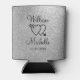 Maßgeschneiderte glänzende Imitate Silber Glitzer Hochzeit kann Kühler. Personalisierte Hochzeiten können für die Gäste kühler werden. Sehr Design. Extravagante funkelnd Glimmer Hochzeitsflaschenhalter mit niedlichem Herz und Pfeil. Klassisches Design mit Namen oder Monogramm-Buchstaben. Romantische Liebe Symbol Design. Für Teambildung, Trauzeugen, Trauzeuge, Ringträger usw. machen Sie einen passenden Ort. Erstellen Sie Ihre eigene gemütliche Gastgeschenk Hochzeit / Souvenir für Ihre Gäste am Party. Romantisches Thema Getränkehalter Design. Ideal für alkoholische Getränke wie Bier. Auch für Flaschen erhältlich. Elegante Skripttypografie. Benutzerdefinierte Hintergrundfarbe. Sparkling Luxus-Stil gemütlich cooler für schicke Hochzeit, extravagantes Brautparty, lustigen Junggeselinnen-Abschied etc.