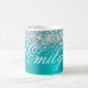 Personalisierter Silberstreifen Glitzer Türkis Bla Kaffeetasse