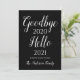 Sehen Sie im neuen Jahr mit diesen eleganten minimalen, Silvester-Urlaubskarten, die "GOODBYE 2020, HELLO 2021, HAPPY NEW YEAR, THE ANDERSON FAMILY" lesen. Die Textstile, -grössen und -farben können nach der Personalisierung durch Anklicken des Schriftartes geändert werden.