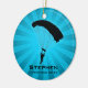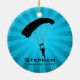 Sky Diving Parachuting Personalisierte Ornament Weihnachten 20XX. Skydivers bilden einen freien Fallkreis vor einem Hintergrund blauer Sternexplosion. Alle Texte individuell anpassbar, vorne und hinten!