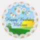 Personalisierter Sonnenaufgang mit Daisy Border Bi Runder Aufkleber