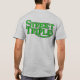 Dieses T-Stück hat eine Tasche auf der Front, die mit Straßen-Dreiergruppenlogo komplett ist und einen Raum für Ihren Namen oder jeden möglichen Text. Es trägt auch ein großes Straßen-Dreiergruppenlogo auf der Rückseite zur Schau.
