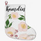 Personalisierter Strumpf Weiße Blume auf Weiß Großer Weihnachtsstrumpf