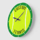 Die Personalisierte Text- und Farbsäulenuhr des Tennisball-Balls: Eine wunderschöne und vollständig anpassbare Tennisball-Wanduhr für Tennisspieler oder Trainer. Klicken Sie auf "Diese Vorlage personalisieren" und geben Sie Ihren eigenen Tennis-Teamnamen oder anderen Text ein, oder Sie können den Platzhalter-Text für eine einfache Tennisball-Uhr löschen. Sie können auch auf [Anpassen] klicken und mit dem Farbwähler-Tool die Randfarbe (derzeit dunkelgrün Set) in eine beliebige Farbe ändern, die Sie gewollt haben. Eine phantastische Zuhause- oder Bürodekoration für Tennisliebhaber!