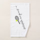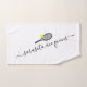 Personalisiertes Tennisteam nennt Handtuch mit einer einfachen niedlichen Tennisschläger-Grafik und individuelle Name oder Text in einer femininen gürteligen und modernen hübschen Drehbuch-Schriftart Monogramm. Alle Mädchen oder Frauen Tennis-Teamkollegen würden das elegante Aussehen dieses modernen und minimalen nützlichen Tennis-Geschenk schätzen.