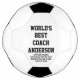 Weltbesten Coach personalisierte Custom Text Soccer Ball. Vollständig anpassbarer schwarzer Text, weißer schlichter Hintergrund.