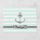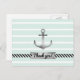 Postkarte mit grauem Aquarellanker auf einem minzgrünen und weißen Streifen Hintergrund. Sie können das Design auch mit benutzerdefiniertem Text unter dem Anker personalisieren.