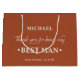 Personalisierte TRAUZEUGE Geschenktasche mit Terracotta und Mandelcreme Farbpalette. Die Namensvorlage ist Set für Sie bereit, um den Namen des Trauzeugen sowie die Namen der Braut & Bräutigam und das Hochzeitstermin hinzuzufügen. Die Dankesworte lautet "Danke, dass du mein Trauzeuge bist" in einer Mischung aus elegantem Drehbuch und starker, mutiger Typografie. Bitte stöbern Sie in unserem Shop für alternative Farben und Größen.
