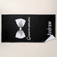 Schwarz-Weiß-Trauzeuge-Design bietet Skriptschriften, eine Bogen-Krawatte-Abbildung und eine leicht zu personalisierende Namensvorlage.