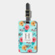 Dieses personalisierte, monogramm Gepäckanhänger mit dem Thema Strand hat ein tropisches Blumenmuster mit orangen und rosa Hibiskus Blume auf einem aqua-blauen Aquarellfarben Hintergrund und den Anfangs- und Namen Ihrer Wahl.