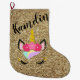 Personalisierter Unicorn Gold Glitzer Strumpf Großer Weihnachtsstrumpf