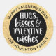 Ein niedlicher Schwarz-Gold-Valentinstag-Sticker mit den Worten, Umarmungen und Valentinwünsche. Personalisiert mit Ihrem Namen für Ihre Valentinstag Geschenke und Leckereien. Entworfen für Sie von BlackBerry Boulevard.