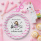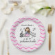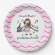 Violinen-Spielerpapier-Teller kennzeichnet einen Strichmännchenmädchenviolinen-Spielerentwurf mit einer breiten Grenze der Zickzack Streifen von rosa, von hellrosa, von Grauem und Weiß. Sie können diesen Violinenspieler-Papier-Teller personifizieren!
