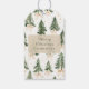 Veredeln Sie Ihre Geschenke zu den Feiertagen mit diesem wunderschönen, personalisierten Weihnachtsgeschenk-Anhänger mit handgemalten Wasserfarben-Bäumen, zarten goldenen Schleifen und filigranen Stern-Akzente. Der elegante neutrale Hintergrund passt perfekt zu jedem Geschenkpapier-Stil.
