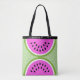 Diese Tasche enthält kühle Wassermelonen-Scheiben, Polka-Punkte, einen grünen Hintergrund und ein individualisierbares Monogramm. Dieses Design ist modern und minimalistisch, und es wird ein lustiges Sommeraccessoire. Ändern Sie den Namen, um Ihren Bedürfnissen gerecht zu werden.