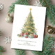 Ein hübscher Aquarelldruck eines Weihnachtsbaumes mit Geschenken auf dieser Weihnachts-/Feiertagskarte. Personalisiere es. Verfügbar in digitaler und gedruckter Form.