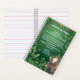 Perfektes Geschenk, um ein Kind zum Schreiben zu ermutigen, Notizen zu machen mit personalisiertem Brief von Santa. Ein grünes, personalisiertes Weihnachtsbriefnotizbuch für ein Mädchen, einen Jungen oder Enkelkind von Santa, der von seinen Freunden, den Rentieren vom Nordpol, unterstützt wird. Es ist herzlich und ermutigend für ein Kind, das brav ist, sich gut benimmt und darauf wartet, dass Santa sein/ihr Geschenk liefert. Die Illustration zeigt eine grüne Kulisse, Laubwerk, Santa und Rentiere. Die Rückseite hat ein passendes Design mit Santa in seiner rustikalen Jacke, Blumenkrone und einer frohen Weihnachtsgrußbotschaft. Der Text kann mit eigenen Worten und Zazzles Werkzeugen personalisiert werden, indem man auf den Personalisieren-Button klickt.