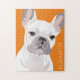 Personalisierte Pop Art franz. Bulldogräse mit einem niedlichen weißen Franchise auf einem tieforangen Hintergrund, der in jede Farbe geändert werden kann, und Ihren Namen.