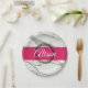 Personalisierter weißer Marmor fuchsienrosa Pappteller