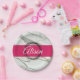 Moderne, runde Namensaufkleber. Weißer Marmor, hellrosa und schwarz personalisierter Namenstext. Elegante, trendige Kreissäulen-Aufkleber.