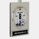 Personalisiertes weißes und schwarzes Fußballfußball Jersey-Shirt, hängend in einem Sportschließfachraum mit einer Wasserflasche, Fußballbügelen und einem Fußbalball. Fügen Sie einfach den Namen und die Zahl (oder das Alter) des Fußballspielers, Fußballfan- oder Fußballteamzug hinzu, um ein einzigartiges Fußballgeschenk herzustellen.