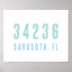 Hochwertiges, einfaches und modernes Design Zip Code Poster personalisiert mit Ihrem eigenen Zip Code, Stadt und Staat. In schönen, farbenfrohen Farben an der Küste, die mit jedem Dekor an der Küste oder mit der Dekoration des Beach House übereinstimmen. Dieses Design lässt sich ganz einfach mit Ihrem Standort personalisieren.