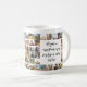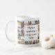 Erstellen Sie Ihre eigene Tasse mit 32 Ihrer Lieblingsfotos und personalisierten Texten in moderner Kalligraphie-Typografie. Der Druck wird vorne und hinten wiederholt.